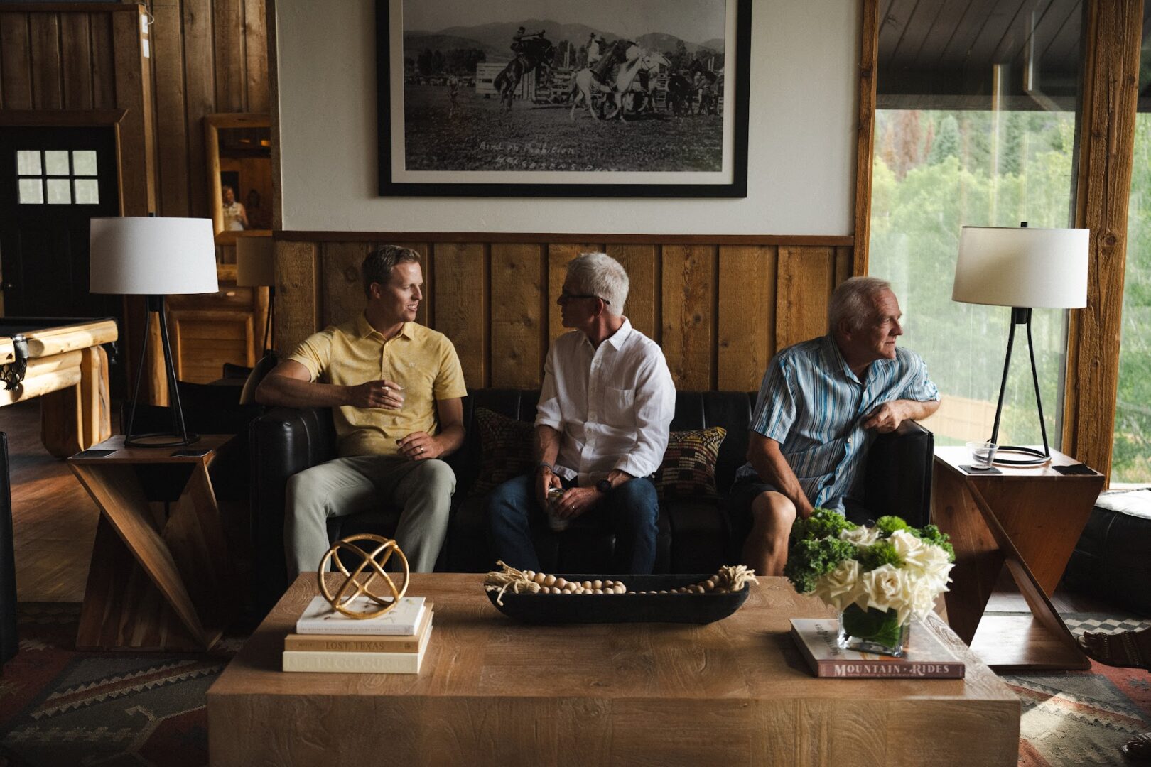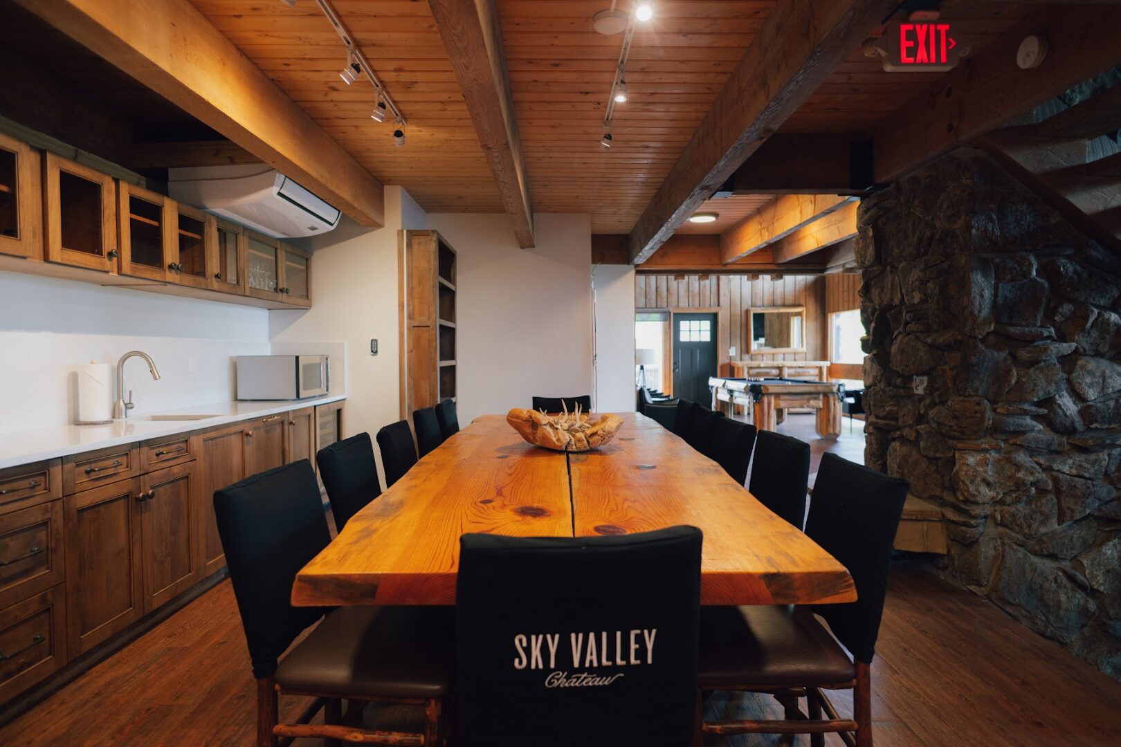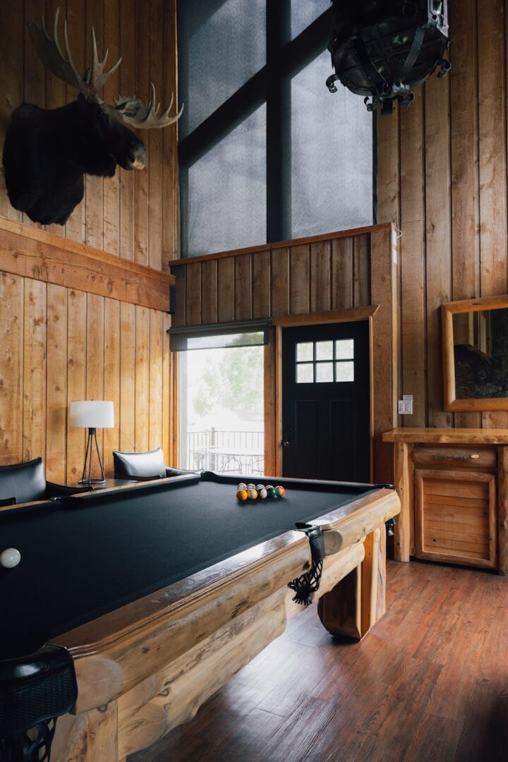 Unwind next to the floor-to-ceiling wood-burning fireplace, or challenge friends to a game on the custom, timber-built pool table. For entertainment, gather around and watch your favorite show or sporting event on the impressive 86” wall-mounted television.