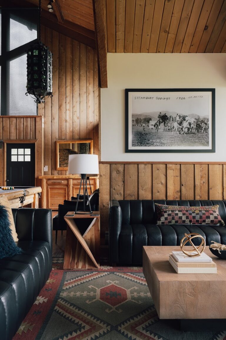 The great room features 12 floor-to-ceiling windows that perfectly frame panoramic views of the Yampa Valley’s majestic mountains and their dense aspen and evergreens. These stunning views can be enjoyed from the expansive seating area, which will comfortably accommodate your large group.
